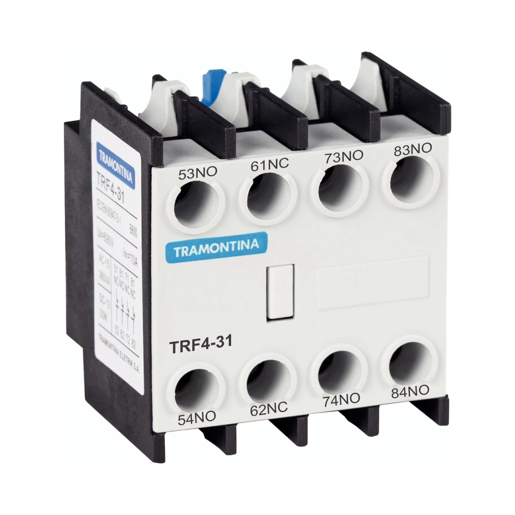 Deixe suas conexões mais eficientes com o Contato Auxiliar Frontal para Contator Tramontina TRF4- 31 3NA+1NF. A peça possibilita instalações que necessitam de mais contatos auxiliares juntamente com o contator, como por exemplo, circuitos de comando com diversos intertravamentos elétricos. Muito mais praticidade e segurança você tem com a Tramontina!
